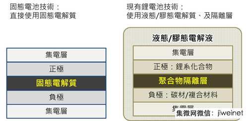圖1 鋰電池液態/固態電解質比較