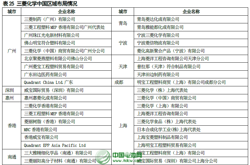 三菱化學(xué)自1963 年對(duì)中國開始出口肥料、1972 年在中國香港設(shè)立現(xiàn)地法人以來,主要以產(chǎn)品加工為中心開展中國的業(yè)務(wù),如今三菱化學(xué)已經(jīng)在中國十多個(gè)城市和省份設(shè)置了生產(chǎn)和銷售網(wǎng)點(diǎn)。