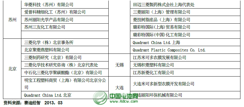 由于看好中國新能源汽車市場,三菱化學(xué)積極在中國市場進(jìn)行布局,在負(fù)極材料領(lǐng)域,三菱化學(xué)在青島平度市設(shè)立了青島雅能都化成有限公司,并確立了從負(fù)極材料原料到產(chǎn)品的連貫的生產(chǎn)基地,其負(fù)極材料產(chǎn)能已經(jīng)提升至8000 噸。另外,三菱化學(xué)在常熟投資的電解液工廠總投資額達(dá)到2.81 億元,產(chǎn)能達(dá)到2 萬噸/年。中國電池網(wǎng)-中國電池雜志戰(zhàn)略合作機(jī)構(gòu)——賽迪顧問認(rèn)為,三菱化學(xué)提前在中國電池材料市場的布局彰顯了其在對(duì)中國新能源汽車市場的長期看好。