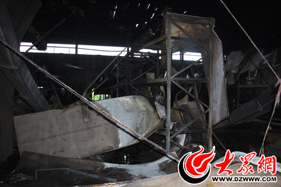 今天上午,大眾網(wǎng)記者來到位于成武縣的山東馳翔新能源科技有限公司倉庫區(qū),該倉庫外墻大面積燒黑,玻璃窗破裂,進出門貼上了成武縣公安消防大隊查封條,倉庫內(nèi)的物品以及貨架被燒得一片狼藉。