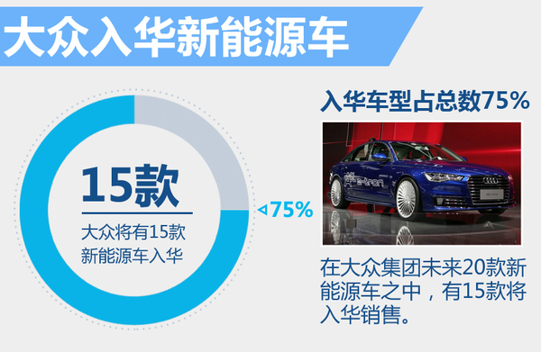 根據(jù)大眾集團在新能源領域的規(guī)劃,到2020年,大眾集團將陸續(xù)推出20款新能源汽車,其中面向中國市場的數(shù)量將達到15款,照此看來,未來中國市場銷售的大眾新能源車將占總數(shù)的75%。首款實現(xiàn)在華國產的A6L e-tron將在年內上市,專為純電動車打造的MEB平臺也將在之后引入國內,推進大眾純電動車的本地化生產進程。