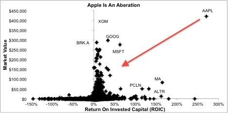 有人認(rèn)為,蘋果股票是價值股,但前提是該公司能夠維持住當(dāng)前的ROIC。蘋果當(dāng)前股價約在每股460美元上下,這預(yù)示著該公司的長期ROIC要維持在130%的水平。我認(rèn)為,蘋果很難保持住這么高的盈利水平。