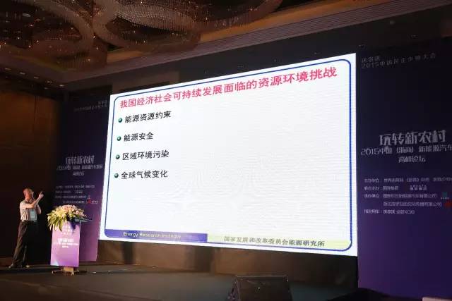 論壇上,中國節能減碳領域的專家、國家發改委能源所可持續發展研究中心主任康艷兵以《生態文明背景下我國新能源汽車行業健康發展的思考》為題做演講。