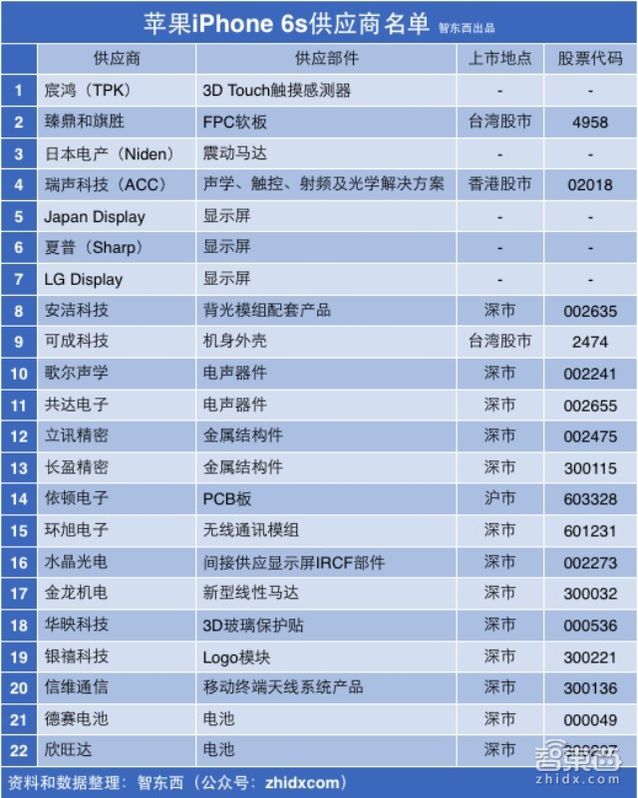 看著這個全家福,緊湊而不失整潔。在簡答的外觀之下,蘊藏著蘋果別樣的工業美學。同時,我們也不能忽視,在這里化整為零的這部iPhone 6s和手中的并非是蘋果一家的杰作,其背后是無數供應商、代工廠共同合力的結果。此前,智東西(公眾號:zhidxcom)曾曝光了一批此次iPhone 6s的供應商名單,致敬也應該獻給他們。