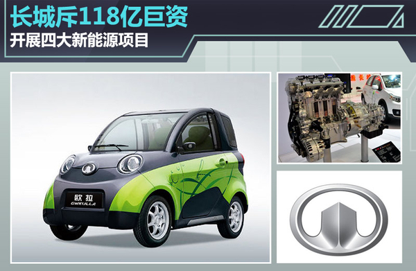 將投資117.8億元人民幣開展新能源汽車研發、新能源智能變速器等四大項目。長城官方還表示,未來將基于現有暢銷車型,開發打造系列化新能源汽車整車平臺。