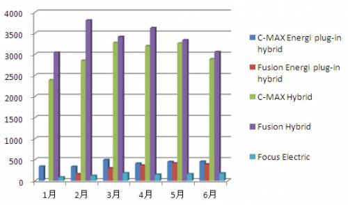 2013年1月-6月福特電動車銷量