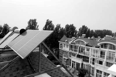北京家庭光伏發電第一人任凱在自家屋頂安裝的光伏發電裝置。本版圖片京華時報記者蒲東峰攝 中歐光伏雙反大戰讓很多人認識了光伏,其實光伏離我們并不遠。北京家庭光伏發電第一人任凱