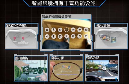 谷歌所開發(fā)的智能眼鏡是基于Android操作系統(tǒng)運行的,理論上其不僅可以用語音操作、還 能采用視覺感應(yīng)控制。在眼鏡上會存在一個與佩戴者的視線同步的光標(biāo),并且可以與視線產(chǎn)生互動。這款眼鏡集智能手機、GPS、相機于一身,具有收發(fā)短信、查 詢天氣路況等功能,與此同時在用戶獲取實時信息的同時,通過眨眼與視覺操作便可完成拍照、甚至上傳一系列的操作。