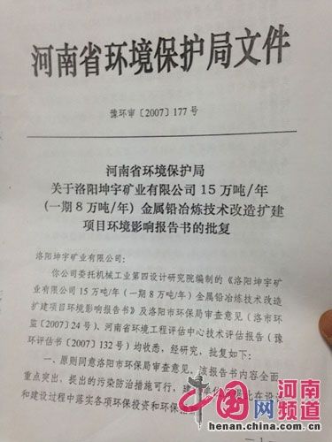 洛寧縣環(huán)保局環(huán)境監(jiān)察大隊夏隊長在接受中國網(wǎng)河南頻道采訪時稱:“永寧金鉛公司從2010開始試生產(chǎn)后,又進行兩次試生產(chǎn)并延期至2011年3月,在試生產(chǎn)結(jié)束后,企業(yè)多次向省環(huán)保部門申請環(huán)保驗收報告,由于多方面的原因,省廳不過來驗收我們也沒辦法,我們地方環(huán)保部門也只能做日常的環(huán)保監(jiān)管工作”。