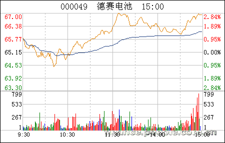德賽電池今日開(kāi)盤(pán)一路走高,收盤(pán)漲2.72%,收于66.92元。