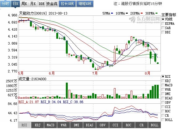 受多重利空因素影響,天能動力(00819.HK)自8月5日以來,短短5個交易日股價從3.86港元一路放量下跌,昨日(13日)收盤3.03港元,按照天能動力總股本111190.80萬股計算,已跌去市值92288.36萬港元。