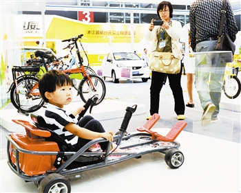 款式奇特的新車型成為大家搶先試騎的焦點。一款休閑車的車把在身體兩側(cè),腳蹬在前輪上,騎在上面就像坐上一個按摩椅。還有一款出口產(chǎn)品就像賽車一樣,騎行者半躺在里面,采用轉(zhuǎn)把發(fā)動和腳踏轉(zhuǎn)向的方式行進,帶給人們更多騎行樂趣。