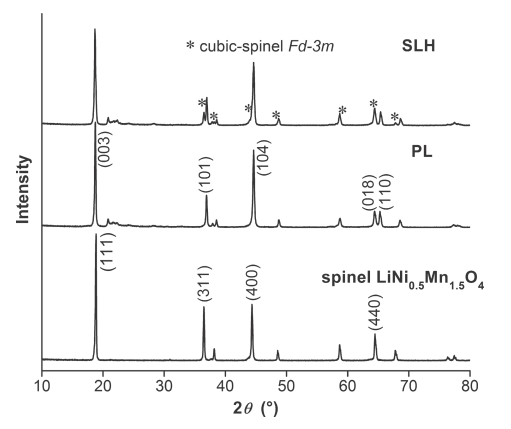 上圖中的SLH就代表Spinel/Layered Heterostructured,也就是這篇文章的主角,2Theta角36度的地方有一個小峰,對應(yīng)于尖晶石相立方晶系的特征峰之一。