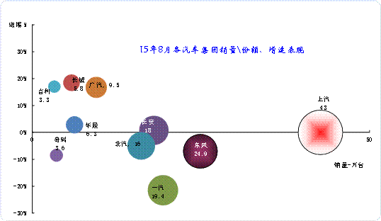 2、主要汽車集團15年銷量與同期的增長分析