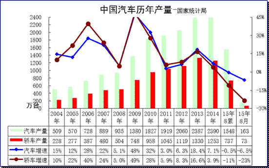 1、國家統計局:2015年汽車生產增速微放緩