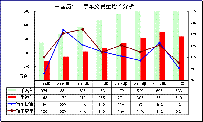 5、2015年汽車二手車銷量平穩(wěn)增長(zhǎng)