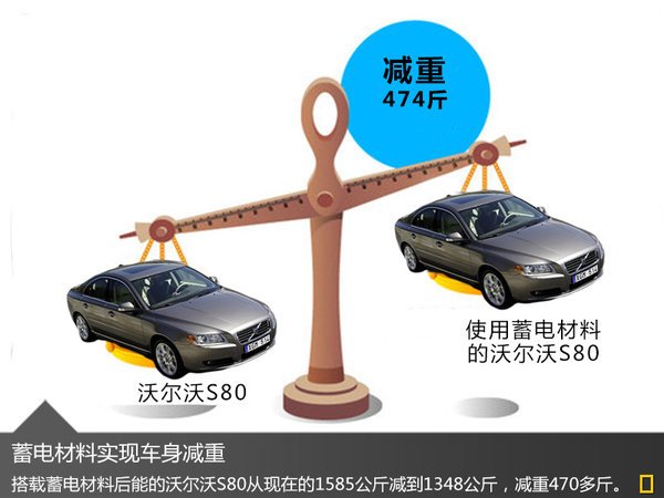 沃爾沃日前對外宣布,已研發(fā)出一種可蓄電材料,應(yīng)用于車身上能讓汽車減重超過15%,目前已經(jīng)搭載在S80測試車上。搭載蓄電材料后的S80能從現(xiàn)在的1585公斤減重到1348公斤,減重474斤,這意味著重量相同的情況下它能儲存更多的電能還能跑的更遠。