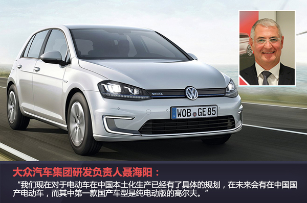 大眾汽車品牌董事會(huì)成員,大眾汽車集團(tuán)動(dòng)力總成研發(fā)負(fù)責(zé)人聶海陽(yáng)博士向網(wǎng)通社表示:“我們現(xiàn)在對(duì)于電動(dòng)車在中國(guó)本土化生產(chǎn)已經(jīng)有了具體的規(guī)劃,在未來(lái)會(huì)有在中國(guó)國(guó)產(chǎn)電動(dòng)車,而其中第一款國(guó)產(chǎn)車型是純電動(dòng)版的高爾夫。”純電動(dòng)高爾夫名為e-Golf,其已經(jīng)在法蘭克福車展上亮相,其預(yù)計(jì)將有望在新建的新能源基地投產(chǎn)。
