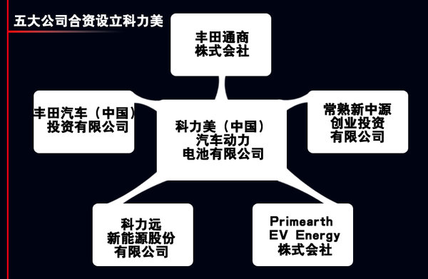 豐田汽車早在2011年就提出在三年內通過國產混合動力核心組件(電池、電機和電控系統),進而擴大新能源車型產能并減少生產成本,以此達到最大范圍普及混動技術的目標。此前豐田汽車(中國)投資有限公司及豐田通商株式會社就與科力美、常熟新中源創業投資有限公司、Primearth EV Energy株式會社設立科力美(中國)汽車動力電池有限公司,用于開發、制造 、銷售搭載于汽車的鎳氫蓄電池單體模塊,該公司制造的產品便是將用于豐田新能源汽車。