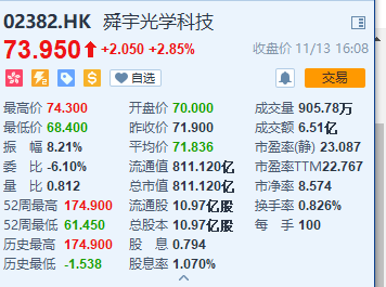 在今天港股開盤后,蘋果產業鏈公司瑞聲科技和舜宇光學科技分別大跌7.44%和4.17%,瑞聲科技的股價也跌破50港元,創3年來低點。但截至收盤,兩家公司止跌反漲,漲幅分別為0.19%和2.85%。