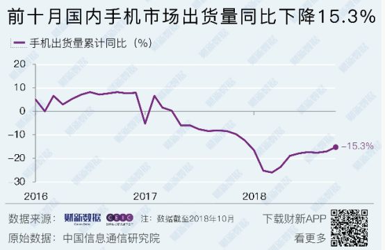 今天中國信通院發布的數據顯示,今年10月,國內手機市場出貨量3853.3萬部,同比增長0.9%,環比下降1.3%;2018年1-10月,國內手機市場出貨量3.43億部,同比下降15.3%。