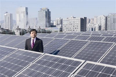 11月29日,南存輝在浙江杭州正泰太陽能公司的太陽能發(fā)電站。新華社