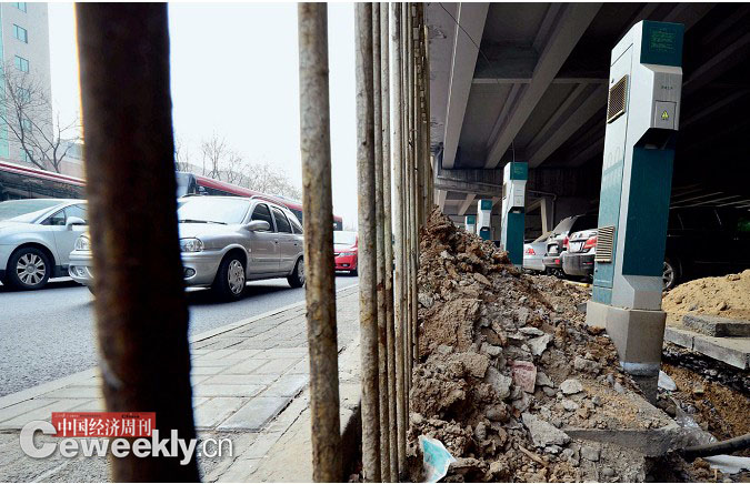 位于北京市航天橋下的新能源汽車充電站,開建一年有余,然而用于乘用車充電的21個充電樁至今尚未建成。本刊記者 曹海鵬|攝