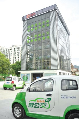 位于杭州古墩路的全國首座純電動汽車智能充換電立體車庫預計于下周進行試運行。該車庫有兩排5層的立體停車位,一共可容納30輛車同時充電,市民可在此租賃電動汽車上路使用。為推動杭州純電動汽車微公交項目計劃,2013年底前杭州要建成30座以上包含分時租賃電動汽車配套設備的充電車庫,初步建立起微公交網點系統。