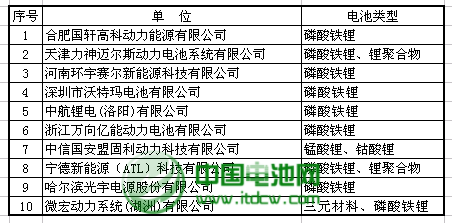 2012-2013年鋰離子動(dòng)力電池主流品牌表單(10家)