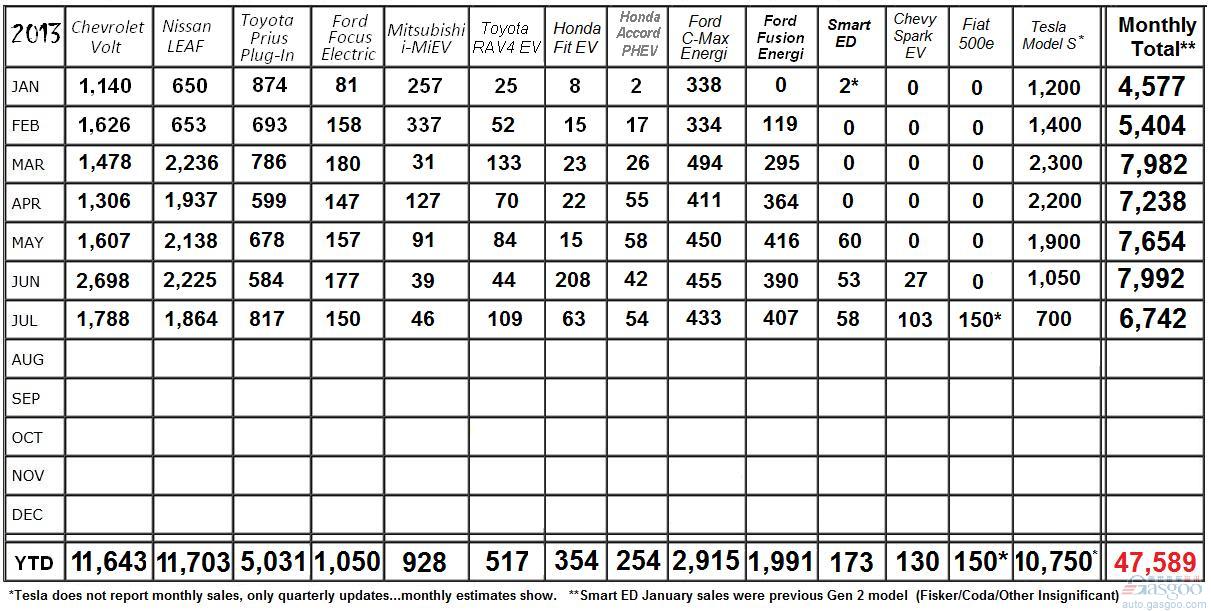 2012年7月份,美國市場電動車銷量只有3,010輛,今年同比增長124.0%,超過去年同期一倍以上。前7個月累計銷量為47,589輛。