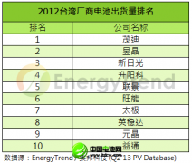 2012年臺灣電池排名出爐出貨超5500MW