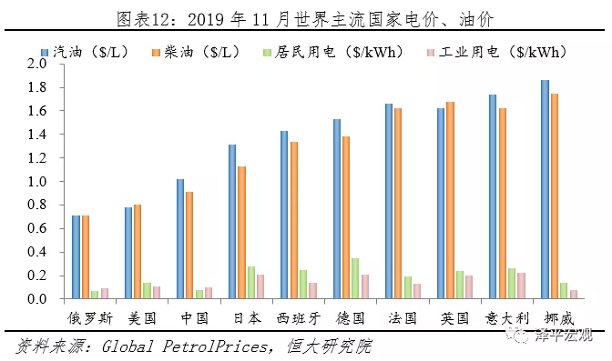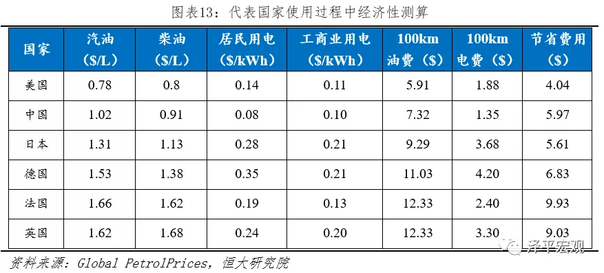需求端:歐洲人對新能源汽車接受度更高,其燃油經(jīng)濟性更強。相比中國,歐盟在發(fā)展新能源汽車方面有幾大優(yōu)勢:1)歐洲人環(huán)保意識強,偏好緊湊型車,新能源汽車接受度高,2018年歐盟A00、A0、A型小轎車合計占比41%;2)歐洲推廣電動汽車經(jīng)濟性更強,按照純電動乘用車電耗每100km消耗15kWh,工業(yè)/居民用電各50%,乘用車汽油車、柴油車占比60%、40%,每100km耗油7.5L計算,使用純電動車每100km美國、中國、日本、德國、法國、英國車企可分別節(jié)約4.04、5.97、5.61、6.83、9.93、9.03美元。