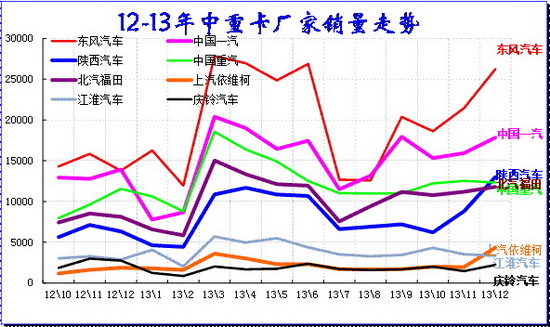 13年中重卡銷量106.09萬臺,累計增速26.5%;13.12月銷量10.19萬臺,同比增長21.9%,環比增長16.5%。