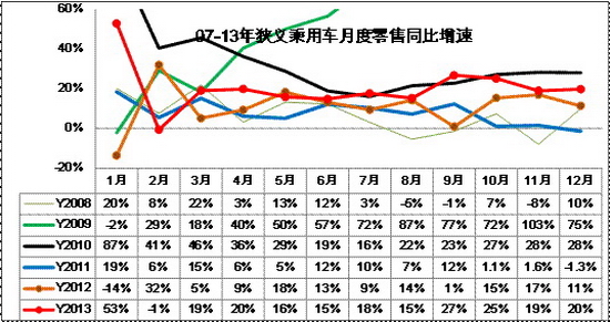 12月的同比20%增速是近3年的12月同比銷量的增速最高的,而且13年12月是在同期和上月的增速均處于高位下的持續拉升。12月也是市場的需求銜接容易出問題的時候,而08年和11年的12月增速都出現低增長,13年的增長是超強的。