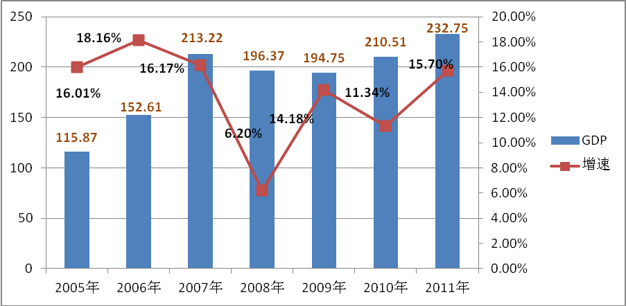 2011年全年金昌市共實(shí)現(xiàn)地區(qū)生產(chǎn)總值232.75億元,比上年增長15.7%。其中:第一產(chǎn)業(yè)增加值12億元,增長5.5%;第二產(chǎn)業(yè)增加值182.4億元,增長17.1%;第三產(chǎn)業(yè)增加值38.35億元,增長12%