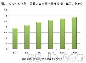 筆記本電腦是目前鋰電池的第二大應(yīng)用領(lǐng)域。據(jù)高工鋰電產(chǎn)業(yè)研究所(GBII)整理的數(shù)據(jù)顯示,2012年中國筆記本電腦出貨量達(dá)到2.4億臺(tái)(圖2)。