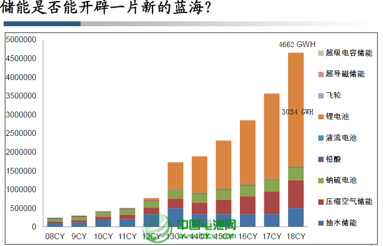 儲能產業的發展與新能源以及智能電網的應用密切相關。首先,儲能電池是新能源產業發展的關鍵環節,也是調控電能質量、優化能源效率的重要手段,在新能源并網應用以及電網本身的發電、輸電、配電和用電等環節具有舉足輕重的作用。國際能源署預測,可再生能源所占比重將從當前的13%增加至2035年時的18%,風電和太陽能等新能源的并網應用和分布式電網應用將會給儲能電池提供廣闊的市場空間。其次,儲能尤其是化學電池在家庭儲能、通訊基站、數據中心應急電源等領域的作用也日漸凸顯,已經形成較大的產業規模,在歐洲、美國和日本應用規模急劇提升。