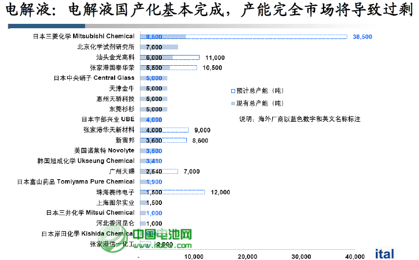 圖38 2012年全球主要電解液企業產能及規劃產能情況 48