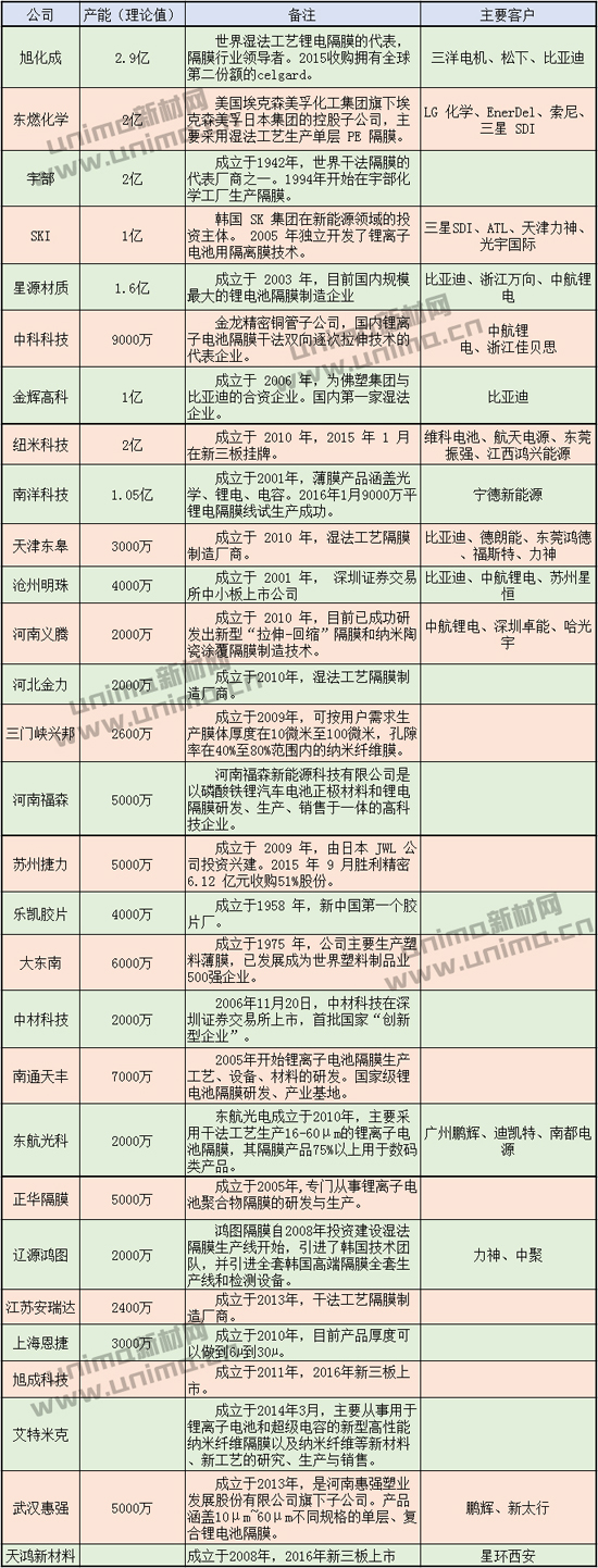 據不完全統計至2016年3月,我國已經擁有包括12家上市公司在內的近50家隔膜企業,規劃產能達到23億㎡/年。
