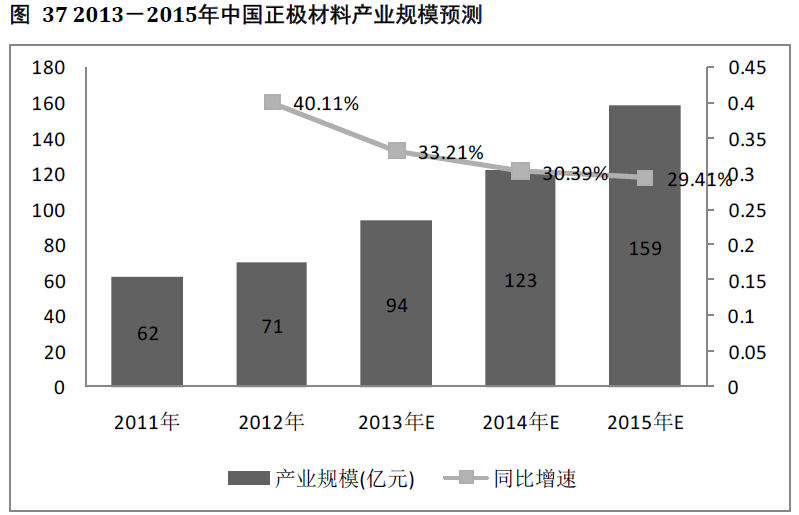 圖 37 2013-2015年中國正極材料產(chǎn)業(yè)規(guī)模預(yù)測 ................ 51