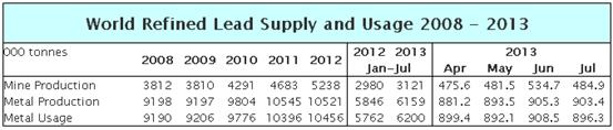 ILZSG稱,今年1-7月,全球精煉鉛產量為615.9萬噸,而同期消費量為620萬噸。
