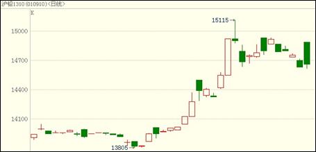 2013年8月份,滬期鉛主力合約集中在1309、1310、1311合約,平均持倉量仍然在1500手附近,較前面兩個月變動不大,資金開始穩定下來。8月鉛期貨交割量在1600手附近,比前面幾個月有所降低,佐證鉛倉單不斷下滑之勢。