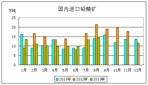 國家統計局數據顯示,2013年1-8月份我國鉛精礦產量為201.61萬噸,同比下降4.64%,其中8月份產量為28.43萬噸,同比下降8.94%。