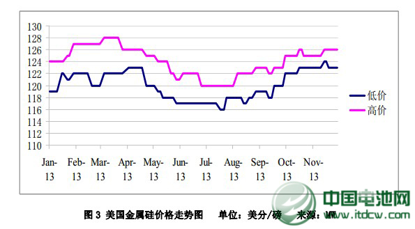 硅系產(chǎn)品傾銷所致。但環(huán)球冶金方面同時(shí)表示,受全球經(jīng)濟(jì)回暖支撐,2014 年長(zhǎng)單簽訂量有所增加,促使四季度硅系合金價(jià)格小幅上揚(yáng),預(yù)計(jì)未來(lái)美國(guó)工業(yè)硅價(jià)格可重返 130 美分/磅。