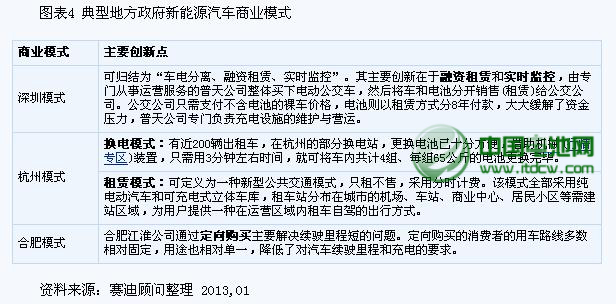 新能源汽車面臨的主要障礙包括續(xù)航里程、性價(jià)比和充電時(shí)間等技術(shù)性問題。因此,要求動(dòng)力電池的技術(shù)突破是解決以上問題的根本性策略。但是短期來看,尋求商業(yè)模式的創(chuàng)新則能夠?qū)崿F(xiàn)立竿見影的效果。與傳統(tǒng)汽車相比,新能源汽車催生了新的商業(yè)模式,其包含了基礎(chǔ)設(shè)施、組件、汽車以及相關(guān)服務(wù)等環(huán)節(jié)。前國(guó)內(nèi)新能源汽車商業(yè)化運(yùn)作初步形成了深圳普天模式、杭州租賃與換電模式和合肥定向購(gòu)買三種模式。三種模式市場(chǎng)切入點(diǎn)各不相同,各具特色,為下一步推廣商業(yè)模式提供了借鑒。