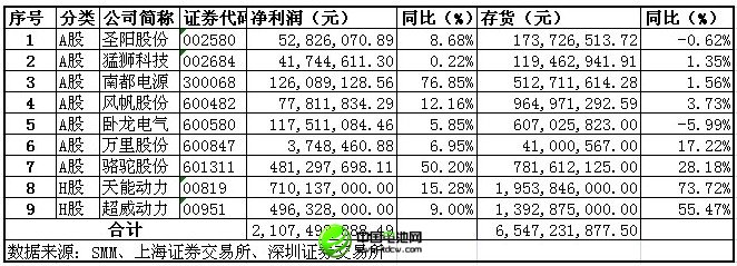 據(jù)統(tǒng)計(jì), A股、港股9家鉛蓄電池企業(yè)2012年凈利達(dá)21.07億元,存貨高達(dá)65.47億元,存貨量為凈利的3.1倍。