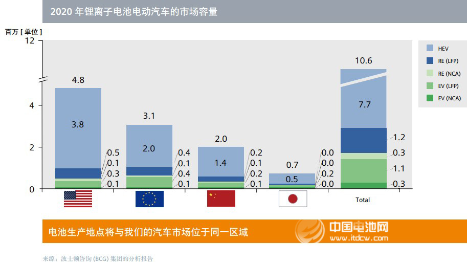 2020 年鋰離子電池電動(dòng)汽車(chē)的市場(chǎng)容量