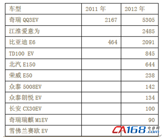 根據汽車工業協會的數據,2012年我國新能源汽車生產了12552輛,其中純電動汽車11375輛,插電式混合動力汽車1311輛。銷售新能源汽車12791輛,其中純電動汽車11375輛,純電動汽車產銷量分別比2