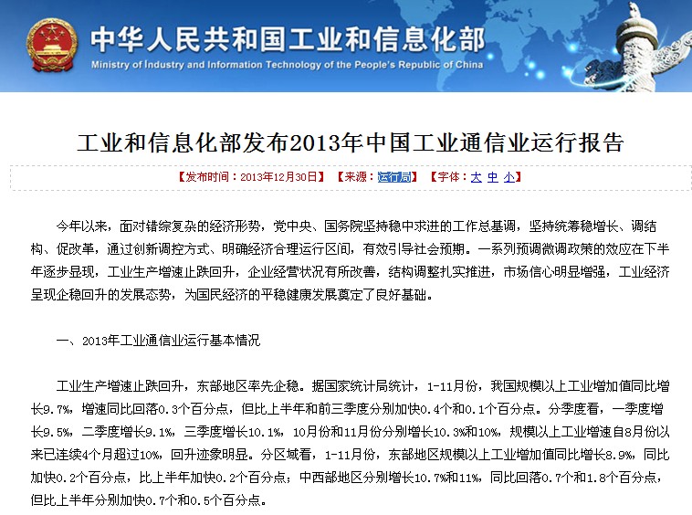 一、2013年工業通信業運行基本情況