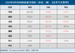 8月全球新能源車市:中國創新高 德法英齊“飛”